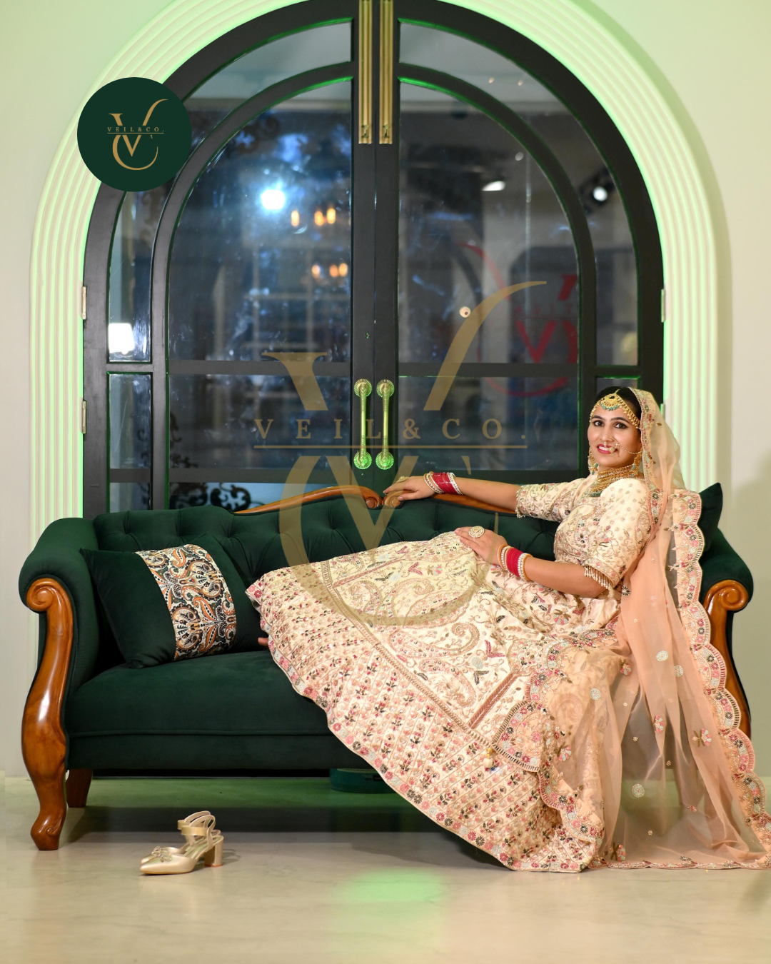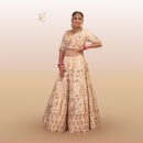 This ivory ensemble showcases a stunning ivory kurti embellished with meticulous kadhayi work, featuring elegant tassels at the bottom for a touch of playfulness. Paired with a lehenga adorned in intricate kadhayi detailing, this outfit radiates sophistication and artistry, making it ideal for special celebrations.